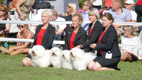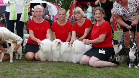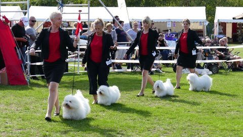 Judge: Tanya Ahlman-Stockmari - Good size, proper gender appreciation, correct proportions in body, correct shapes of head with breed typical expressions, generally good pigmentations with white coloured dogs, nice long ribcages, good bones for the size, excellent coat textures, sound