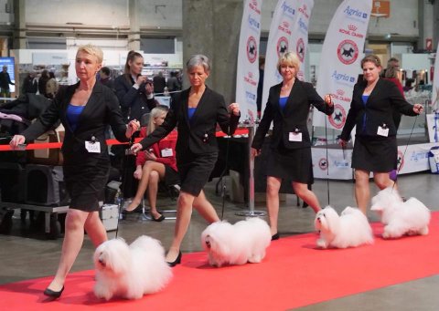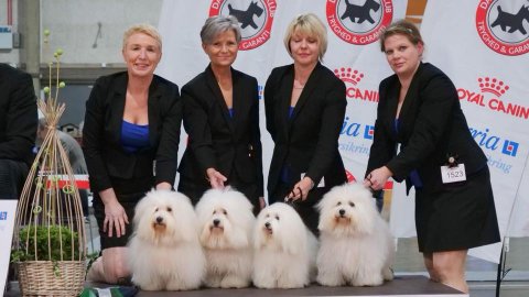 A group of high class, excellent gender, well-formed head with good expressions, good proportions, excellent backbones, good touches, a very good group, and honors to the breeder. |