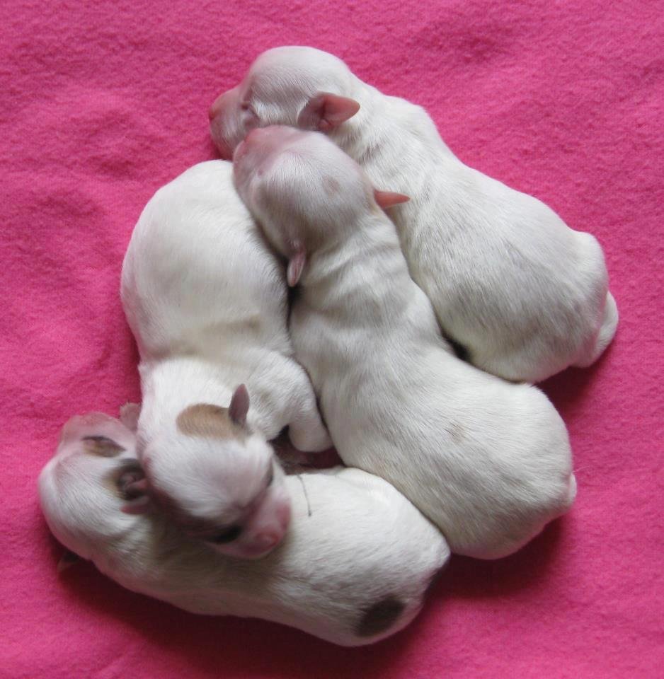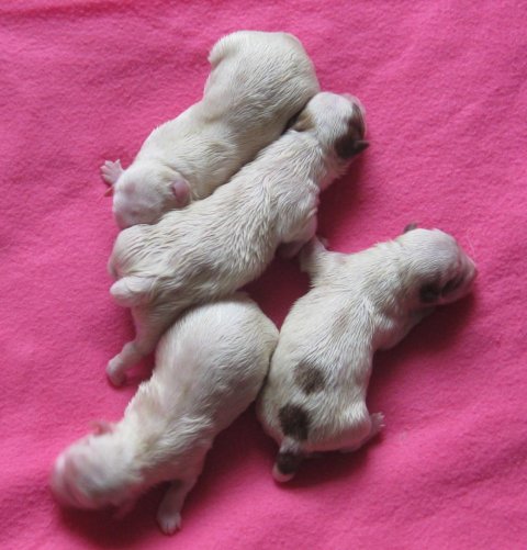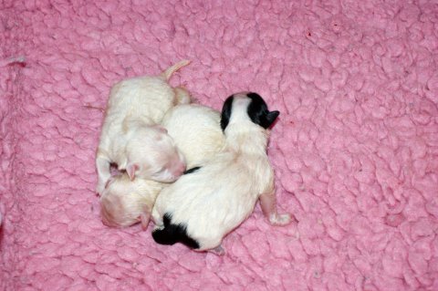 Born 9.4-2013 2 females and 1 male 1 white female 198 gram 1 white female 194 gram 1 male with color 208 gram The female belongs to kennel Riverlakes in Sweden by Ewa Hallestrand More info: www.riverlakes.se |