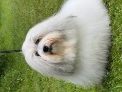 Rifi is born with black color - but almost white today. Rifi is all I hoped for – healthy (CHIC-certificated in OFA) beautiful and has the most amazing gentle temper.