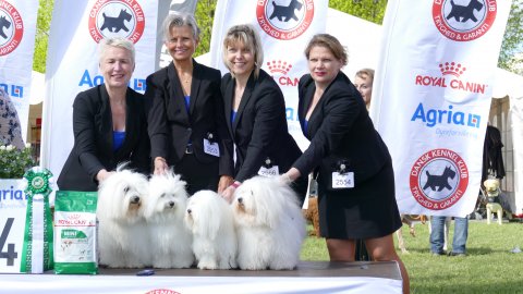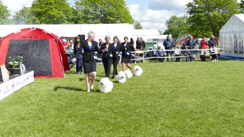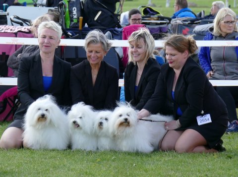 4 combinations - Very similar in type, breeder can be very proud of the quality in her dogs, they have good quality of coat, good cotton quality, they move very easy and typical.