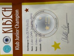 Junior EXC1, CQ, Club Junior CAC BOB Junior - Club Junior Champion 3. Best Male, CAC Did not stay for the Main Ring |