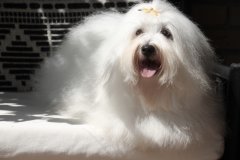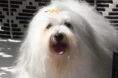 Lilly has a snow white typical Coton coat (from Rouvier Lines) – pure cotton, and a strong black pigmentation. She is always in a good mood, and full of life and happiness.